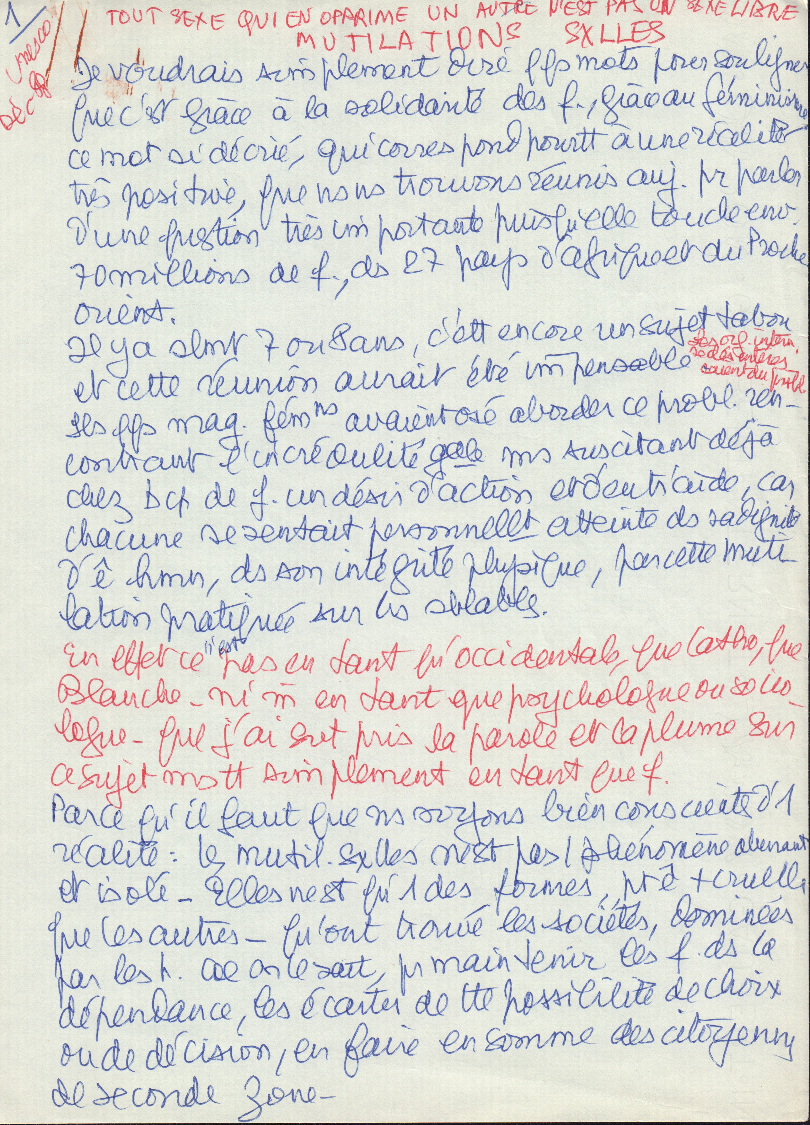 Je voudrais simplement dire qqs mots pour souligner que c'est grâce à la solidarité des f., grâce au féminisme, ce mot si décrié, qui correspond pourttà une réalité très positive, que ns ns trouvons réunis auj. pr parler d'une question très importantes puisqu'elle touche env.