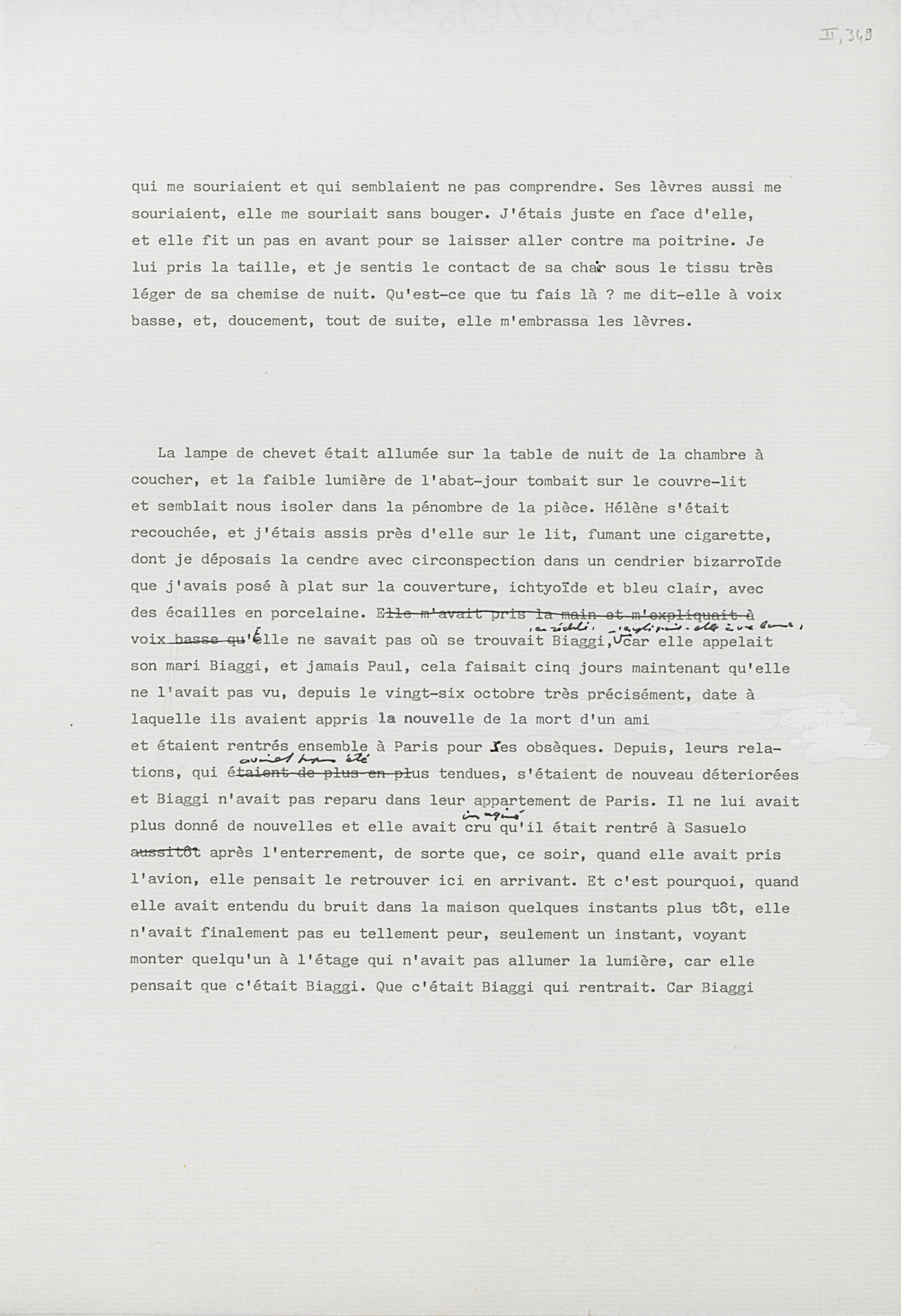 recouchée, et j'étais assis près d'elle sur le lit, fumant une cigarette,