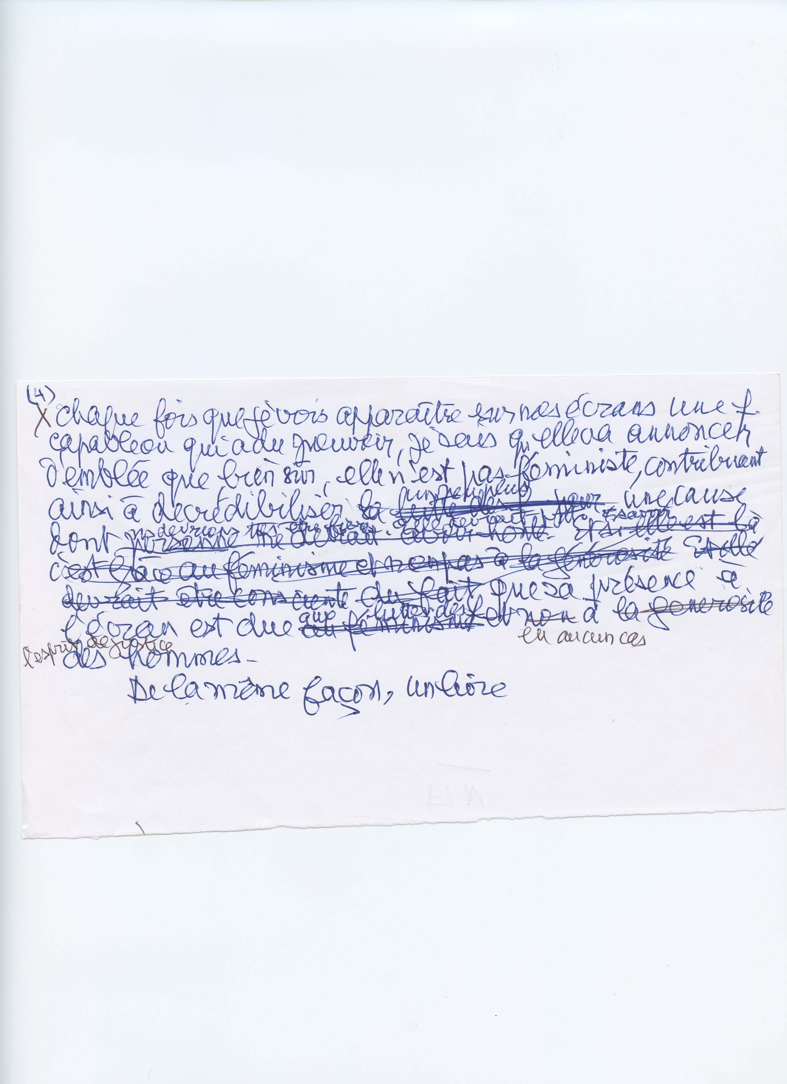 d'emblée que bien sûr, elle n'est pas féministe, contribuant